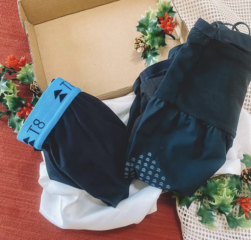 This gift box contains a pair of T8 Sherpa Shorts, a pair of T8 Commandos Underwear, and a pair of T8 Running Socks. Choose from different colors of T8 Sherpa Shorts and designs of running socks.
